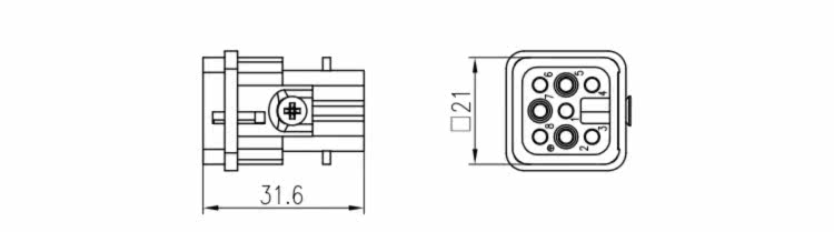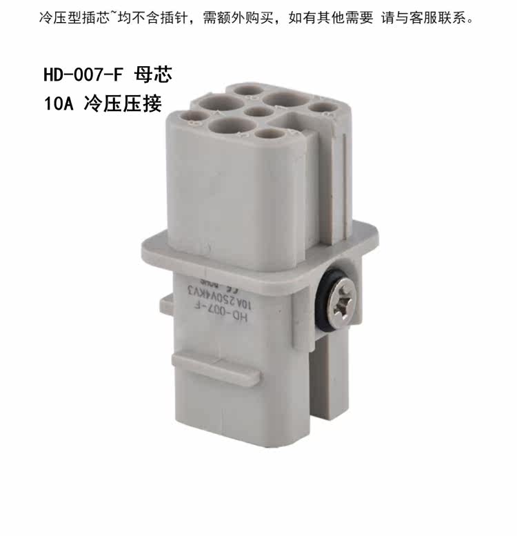 矩形重载连接器 7芯 10A底座开孔安装 航空插头插座 HDC-HD-007