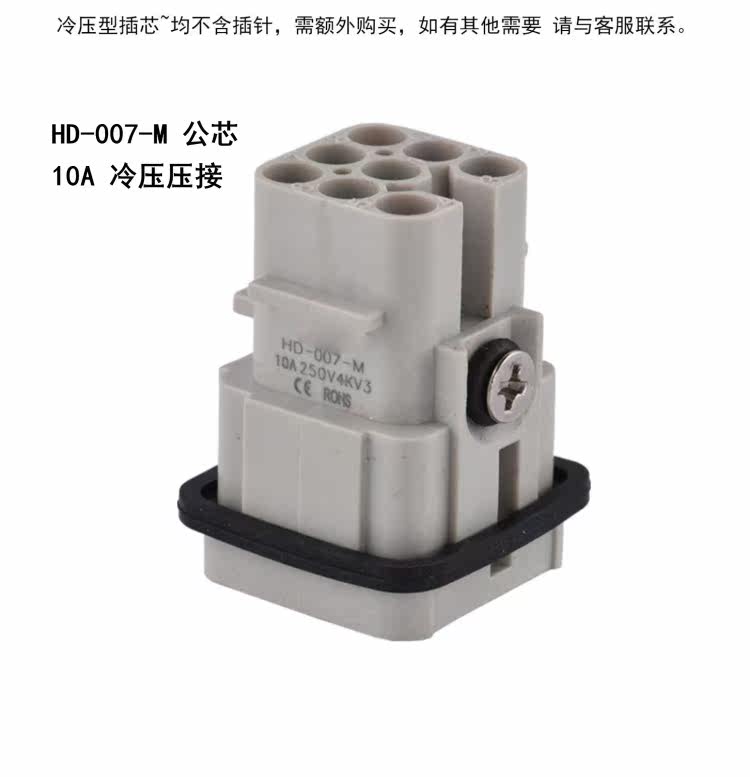 矩形重载连接器 7针工业防水航空插头插座热流道插头 HDC-HD-007