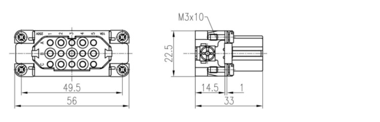 矩形重载连接器 8芯/10A工业防水航空插头插座 HDC-HD-008