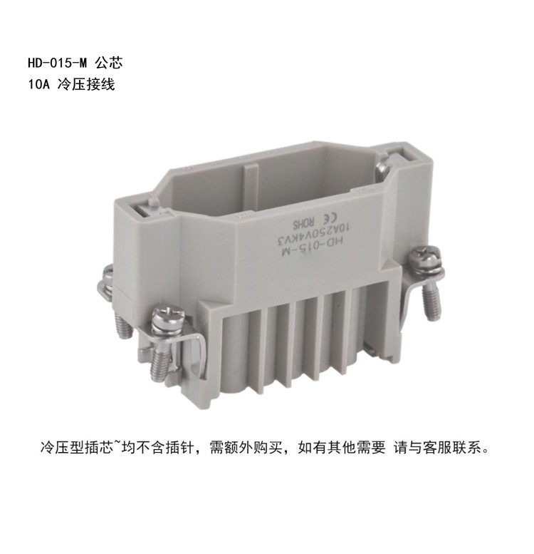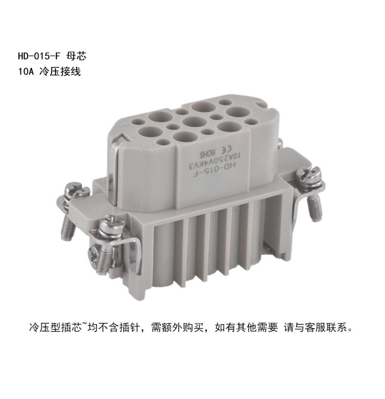 矩形重载连接器 15芯冷压接 航空插头插座工业防水 HDC-HD-015