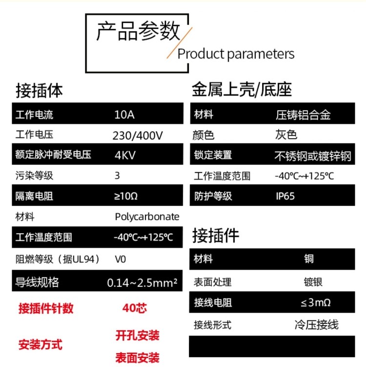 矩形重载连接器 40芯针热流道 工业防水航空插头插座 HDC-HD-040