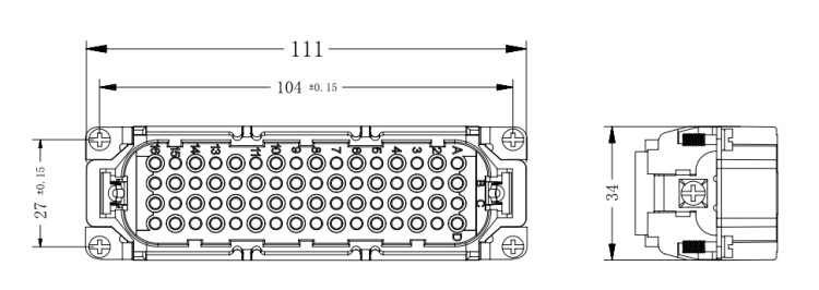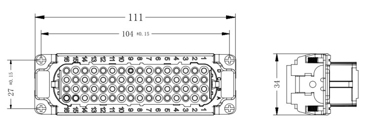 矩形重载连接器 64芯表面安装 航空插头插座 工业防水 HDC-HD-064