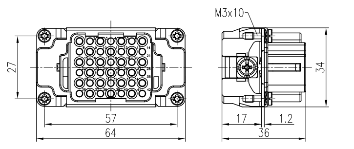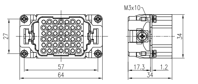 矩形重载连接器42针 表面安装全套航空插头工业防水 HDC-HDD-042