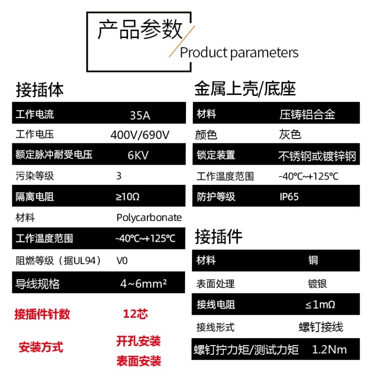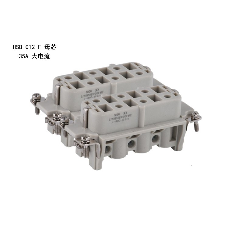 矩形重载连接器 12芯35A大电流 航空插头插座 HDC-HSB-012