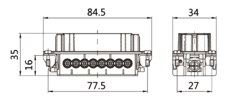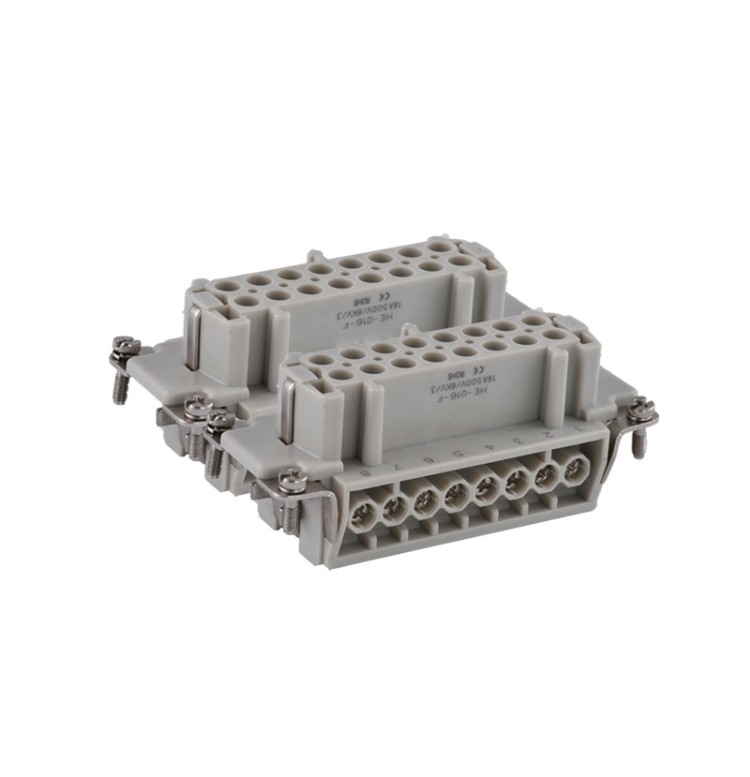 矩形重载连接器16芯/针冷压型插件航空插头 HE-016-MC/FC公母芯体