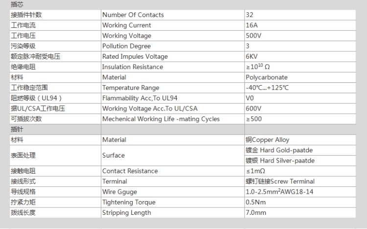 矩形重载连接器 32芯16A 热流道 温控箱插头 HE-032-MF公母芯
