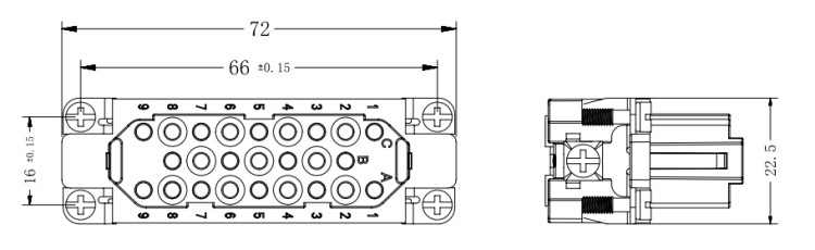 矩形重载连接器64芯冷压针接插航空插头插座HEE-064-MCFC公母芯
