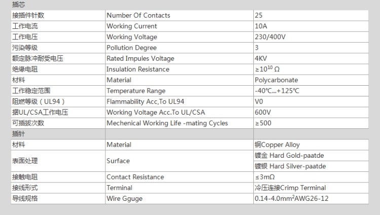 工业矩形插座芯 25针冷压型 航空插头插座 HD-025-M/F公芯母芯