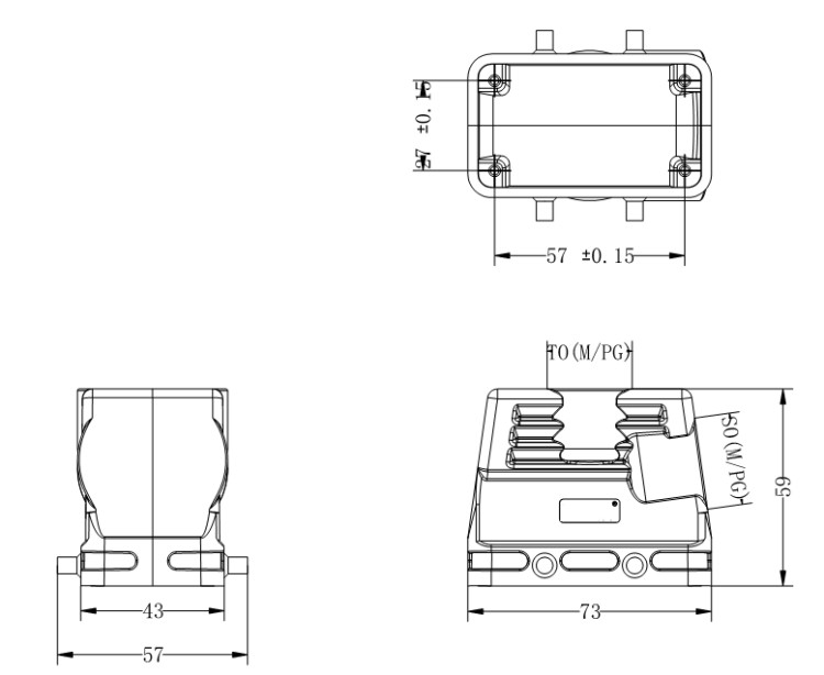 矩形重载连接器 H10B侧出4耳上壳 航空插头插座 H10B-SO-4B