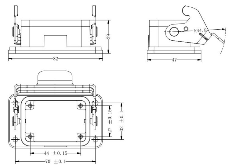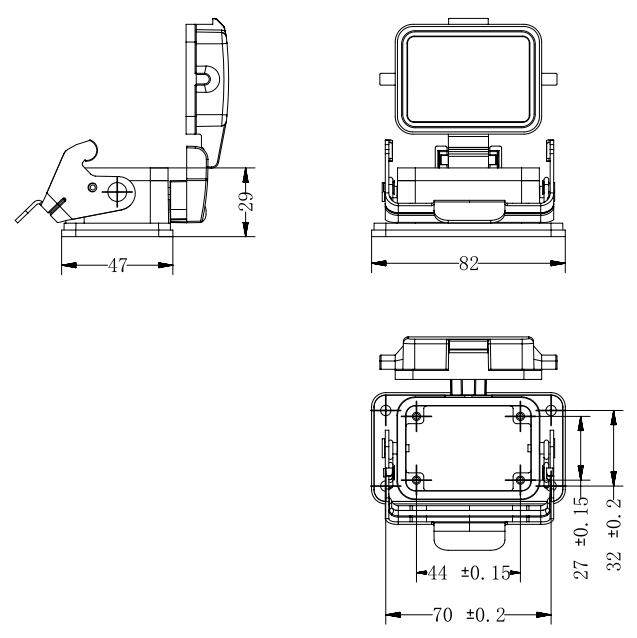 矩形重载连接器 H6B开孔单扣底座工业防护插头插座 H6B-HB-1L