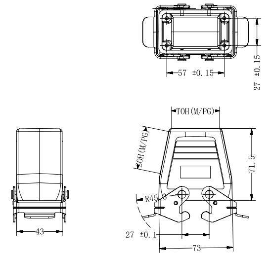 矩形重载连接器 H10B高结构顶出上壳 工业插头 H10B-TOH-2B-M32